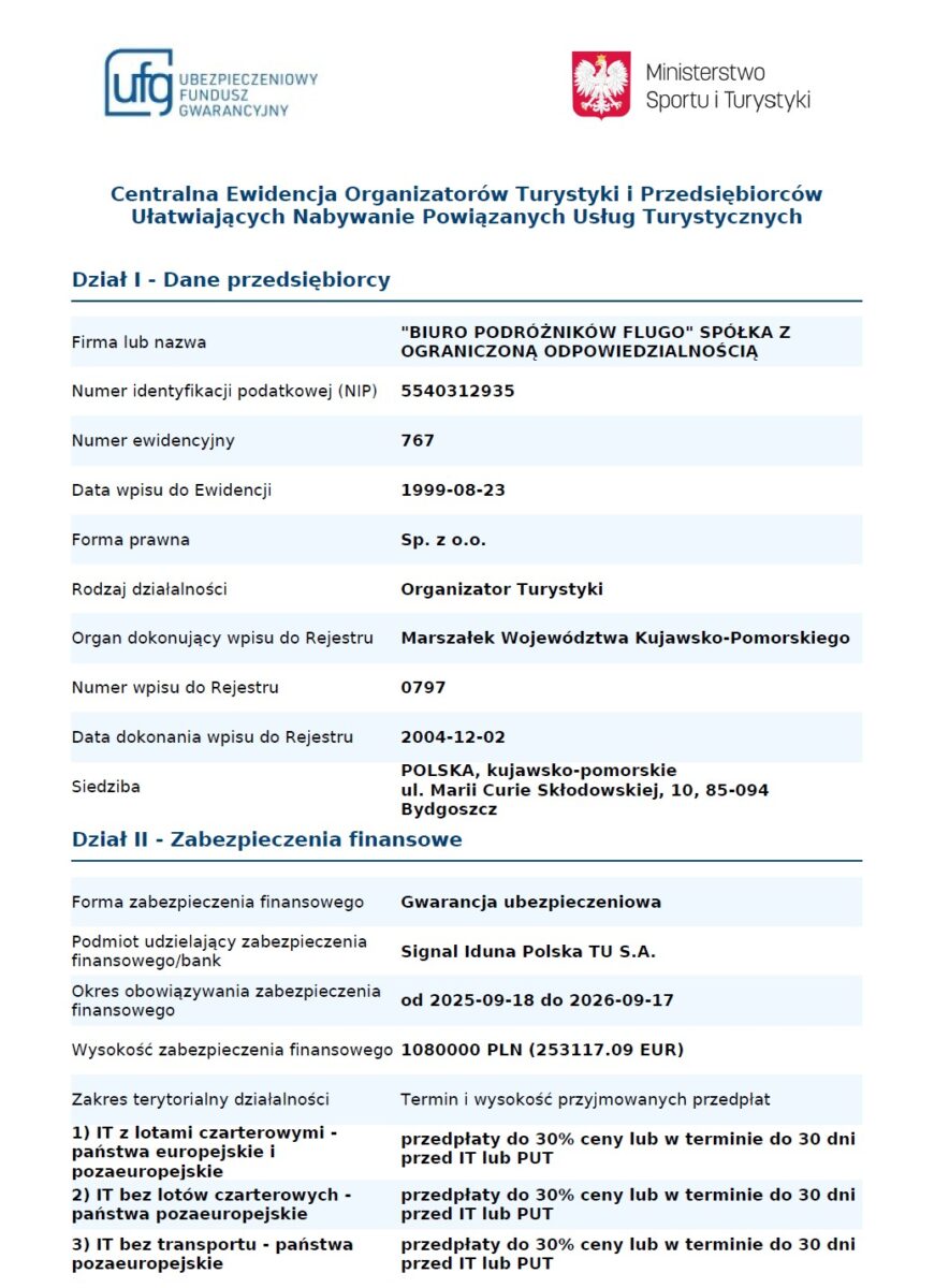 Informujemy, że Państwa zgoda na przetwarzanie danych osobowych może zostać cofnięta w dowolnym momencie przez wysłanie wiadomości e-mail na adres naszego ABI/IOD biuro@flugo.pl spod adresu, którego zgoda dotyczy. Informujemy, że nie jesteście Państwo profilowani. Państwa dane nie będą przekazywane poza EOG ani udostępniane organizacjom międzynarodowym.