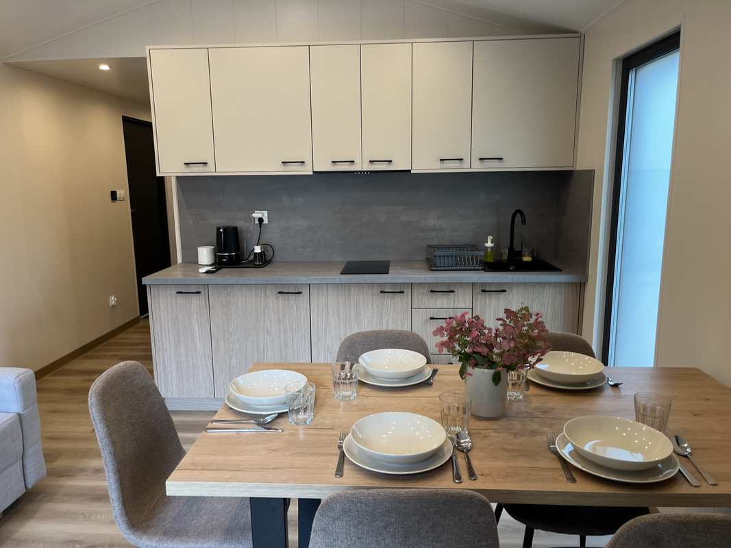 Domki wyposażone są w sofę, telewizor, Wi-Fi, parking oraz zestaw pościeli i ręczników. Domki nie posiadają zmywarki ani pralki.